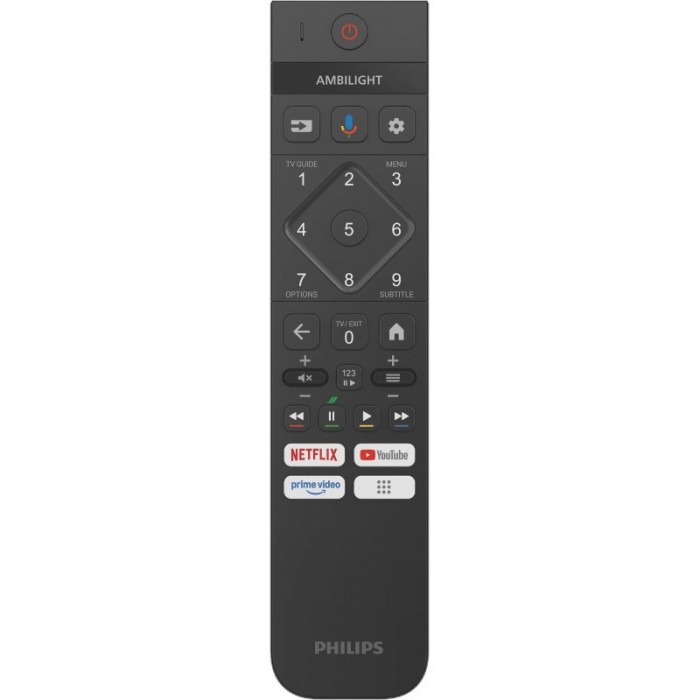 Телевізор Philips 55OLED910/12 — 55-дюймовий OLED+-модель чорного кольору з роздільною здатністю 4K UHD 3840×2160 та частотою оновлення 144 Гц для динамічних сцен. Технологія Ambilight з чотирма сторонами створює розширене освітлення, що синхронізується з екраном, музикою чи грою. Smart Google TV з 32 ГБ пам'яті забезпечує доступ до Netflix, YouTube, Disney+ та інших додатків, з підтримкою голосового керування через Google Assistant та Alexa. Аудіосистема Bowers & Wilkins 3.1 каналів потужністю 80 Вт з Dolby Atmos та субвуфером передає об'ємний звук. Процесор P5 AI Perfect Picture Engine оптимізує зображення з HDR10+, Dolby Vision та VRR для ігор.