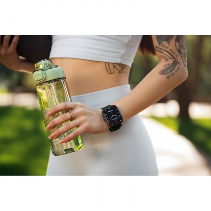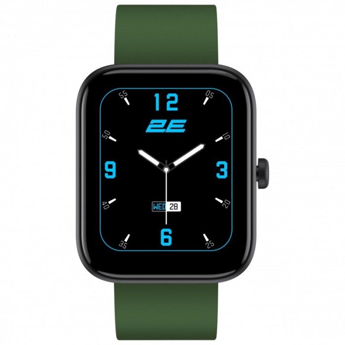 Смарт-годинник 2E Alpha SQ Music Edition 46мм, 1.78", 368x448, AMOLED, BT 5.2, Чорно-зелений + ремінець сірий