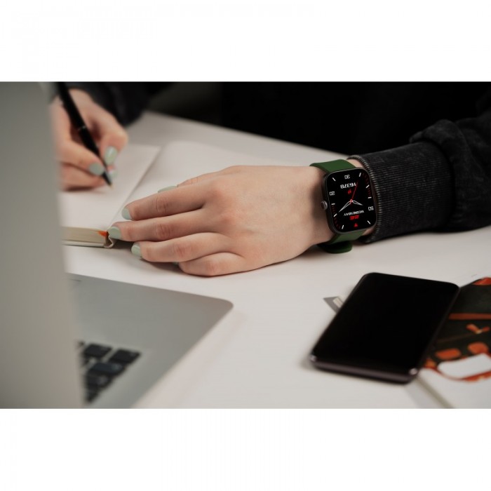 Смартгодинник, 2E, Alpha, SQ, Music, Edition, 46мм, 178, 368x448, AMOLED, BT, 52, Чорнозелений, ремінець, сірий