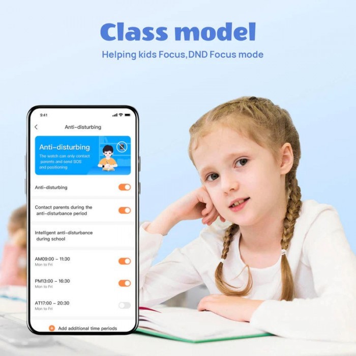 Будильник, Ліхтарик, Відеодзвінки, Роумінг, Альбом, Хмарний альбом, Погода, Розклад занять, Крокомір, Зміна циферблатів, Додавання друзів, Голосовий мікрочат (між годинниками), Сімейний груповий чат, Соціальна взаємодія між годинником і телефоном, Білий список SMS, Білий список викликів, Режим уроку (Не турбувати під час уроку)