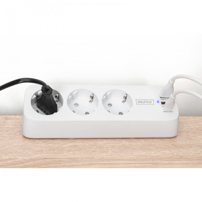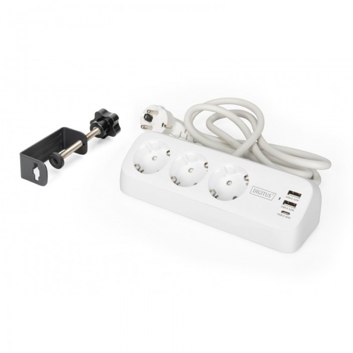 Блок розеток DIGITUS Office, 3xSchuko, 2xUSB-A, 1xUSB-C, 16A, 1.5м, вилка Schuko, білий
