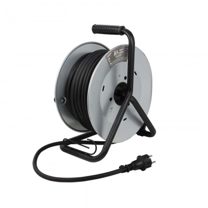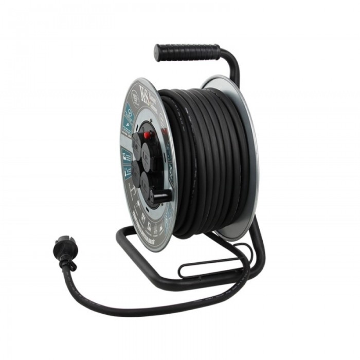Подовжувач, мережевий, KonnerSohnen, KS, CRM30M, 30м, 4xТипF, 16A, котушці, чорний