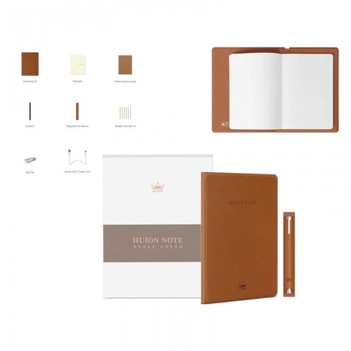 Huion Note переосмислює нове покоління цифрових блокнотів із різними функціями. Все у форматі A5 із синхронізацією запису, автономним зберіганням, керуванням документами та доступом до PDF-файлів одним натисканням кнопки. Huion Note має міцну захисну обкладинку зі шкіри спанлейс і 50 сторінок змінного паперу. Технологія PenTech 3.0 забезпечує більш стабільну роботу штриха та криву смарт-ручки Huion Scribo 2-го покоління. Крім того, розумна ручка оснащена пластиковими наконечниками та стандартними насадками для кулькових ручок для різноманітних потреб у письмі.