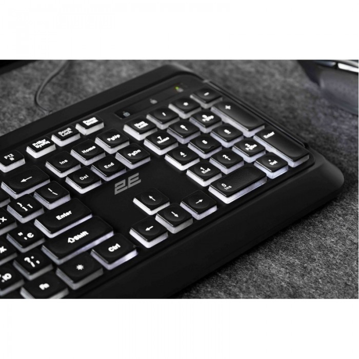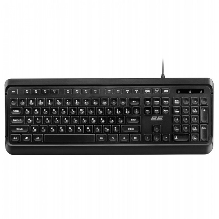 Клавіатура, мембранна, 2E, KS120, 104key, USBA, ENUK, White, LED, чорний