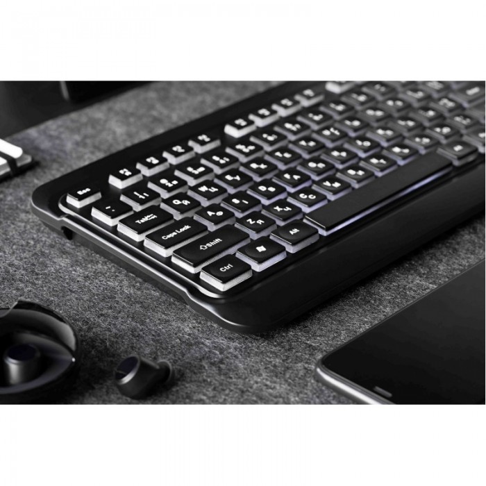 Клавіатура ідеально підходить для домашнього використання, адже з нею легко працювати вдень та вночі завдяки підсвічуванню клавіш білим м’яким кольором. 12 мультимедійних клавіш додадуть додаткового комфорту під час пере... Read more...