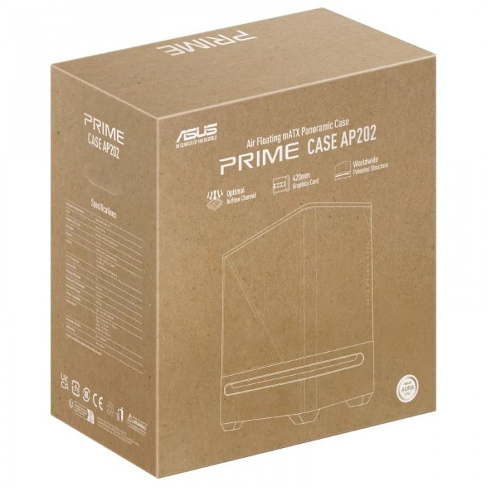 Корпус ASUS Prime AP202 ARGB поєднує компактний формат mATX і розширені можливості для сучасних збірок. Панорамна вигнута панель із загартованого скла відкриває огляд компонентів з різних ракурсів. Продумана вентиляційна схема з фірмовим слот-вентом сприяє ефективному відведенню тепла від відеокарти. Простір усередині розрахований на масивні відеокарти та потужні системи охолодження. Вбудоване ARGB-підсвічування формує виразний вигляд системи.