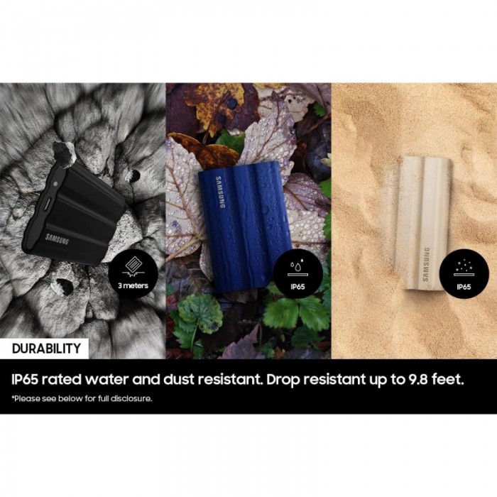 Samsung T7 Shield 4TB — портативний SSD з інтерфейсом USB 3.2 Gen 2 Type-C, швидкістю читання до 1050 МБ/с та запису до 1000 МБ/с. Має компактний кишеньковий розмір, захист від ударів, пилу та води (IP65). Використовує пам’ять 3D NAND, підходить для резервного копіювання, перенесення великих файлів та роботи з 4K-відео. Гарантія 24 місяці. Країна виробництва вказана на упаковці.