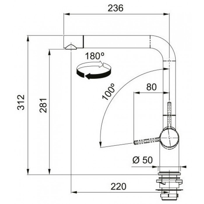 Змішувач, кухні, Franke, Active, L, довжвиливу, 236мм, поворотний, 1важіль, сірий, сланець