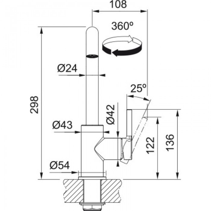 Змішувач, кухні, Franke, Lina, U, довжвиливу, 211мм, поворотний, 1важіль, чорний, матовий