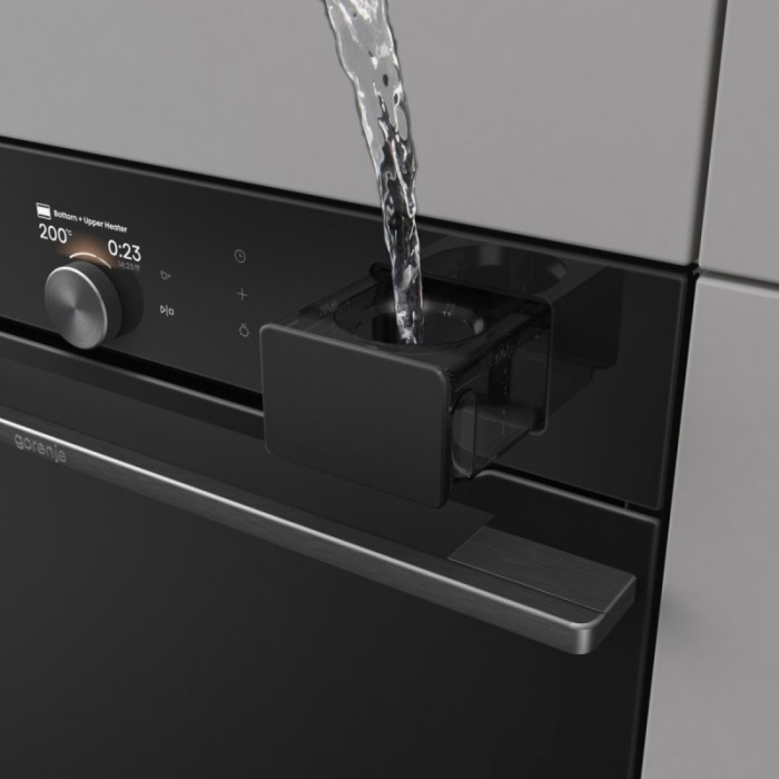 Електрична духова шафа Gorenje поєднує сучасні технології та стильний дизайн. Оснащена TFT-дисплеєм VisionPlus з бібліотекою рецептів, підтримує парове приготування SteamAssist Pro, функції AirFry, AutoBake, MeatProbe, GratinDuo та спеціальний режим піци при 300 °C. Велика камера BigSpace, дистанційне керування через ConnectLife і чорний корпус BlackDoor з підсвіткою роблять процес приготування зручним і ефективним.