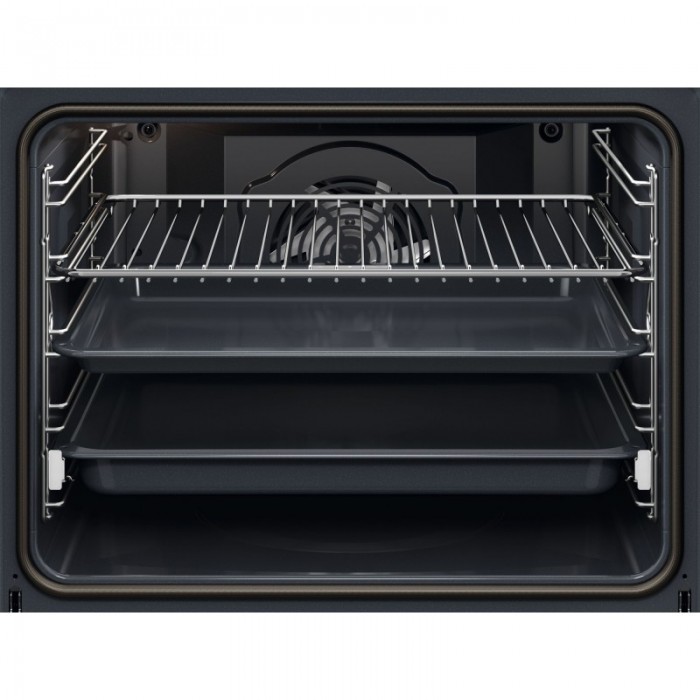 Електрична вбудована духова шафа Electrolux серії 700 MealAssist оснащена сенсорним дисплеєм EXCite з інтуїтивним керуванням і функцією Assisted Cooking, яка автоматично підбирає оптимальні параметри для різних страв. Піролітичне очищення перетворює забруднення на попіл, а система плавного зачинення дверцят та багаторівневе готування з третім нагрівальним елементом забезпечують комфорт і стабільний результат.