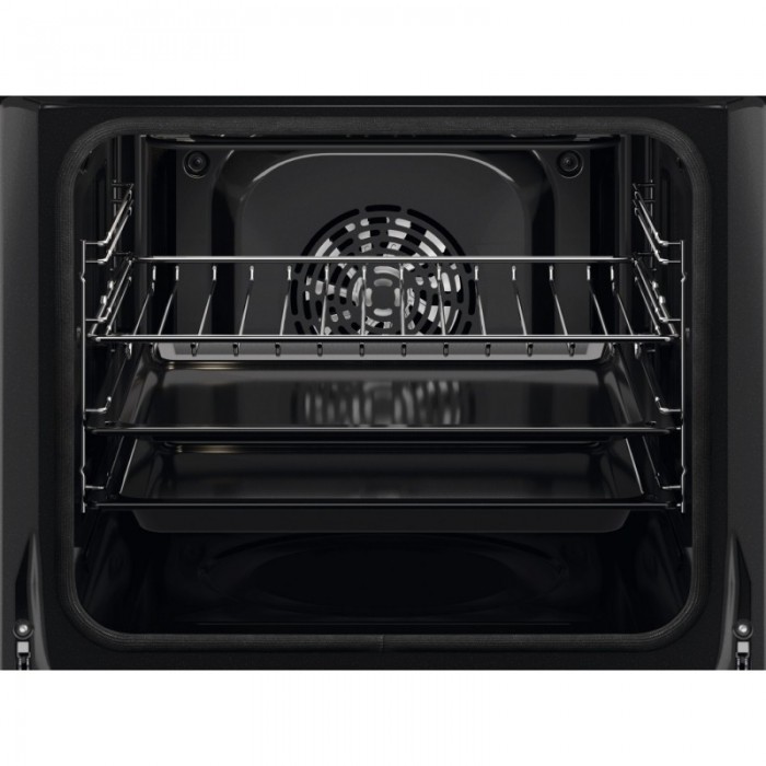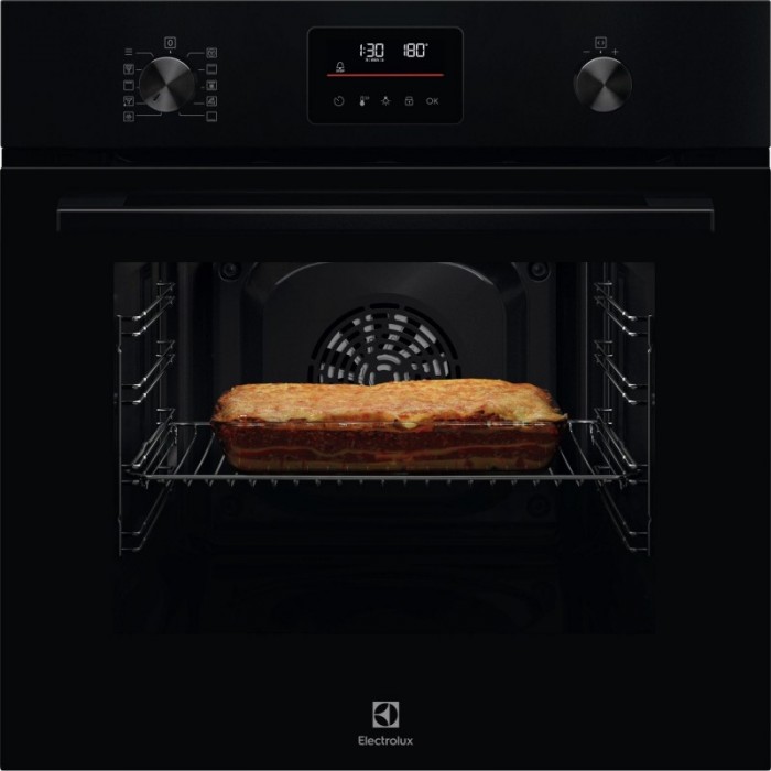 Електрична вбудована духова шафа Electrolux із технологією SurroundCook® забезпечує рівномірний розподіл гарячого повітря в камері, тому страви пропікаються однаково на різних рівнях. Багаторівневе готування з третім нагрівальним елементом, функція швидкого нагрівання та конвекція дають змогу готувати декілька страв за менший час. Дисплей EXPlore LED із п’ятьма сенсорними кнопками спрощує контроль температури, режимів і таймера. Піролітичне самоочищення перетворює забруднення на попіл, який після охолодження легко прибрати м’якою вологою серветкою.