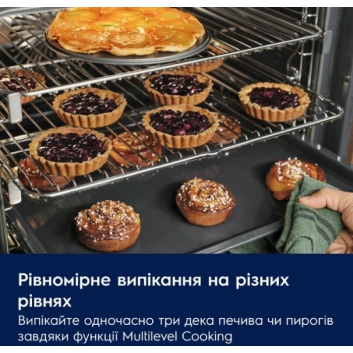 Електрична вбудована духова шафа Electrolux з технологією SurroundCook® забезпечує рівномірний розподіл тепла по всій камері. Багаторівневе готування з додатковим нагрівальним елементом, часткове каталітичне очищення зад... Read more...