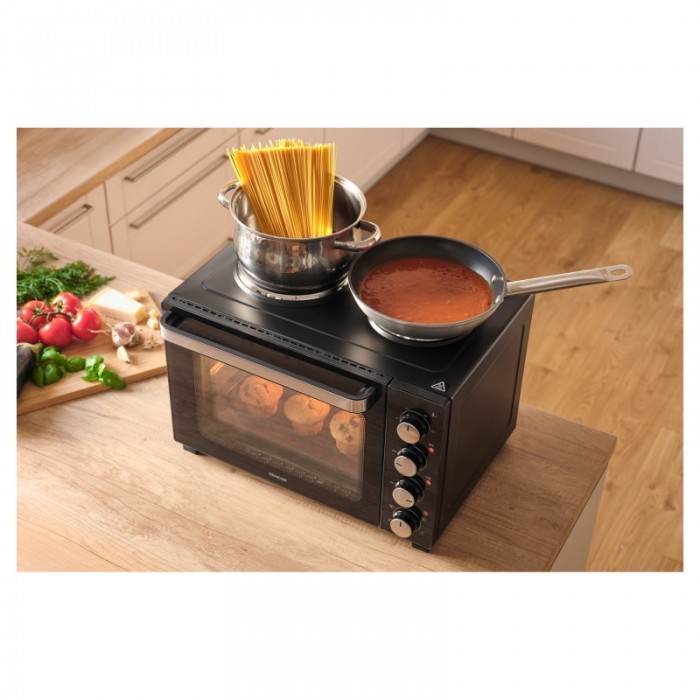 Електрична духовка Sencor SEO 3500BK поєднує функції повноцінної печі та варильної поверхні з двома конфорками. Об’єм 35 л і загальна потужність 3 200 Вт забезпечують ефективне приготування різноманітних страв — від супі... Read more...