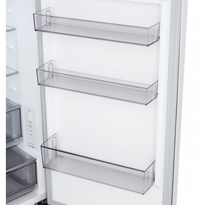 Холодильник LG GC-B459EQYM з нижньою морозильною камерою підтримує стабільну температуру завдяки інверторному компресору та системі Total No Frost. Загальний корисний об’єм — 333 літри: 220 літрів у холодильній камері та 113 літрів у морозильній. Технологія DoorCooling+ швидко відновлює холод після відкриття дверей, а зона свіжості Fresh Zone зберігає овочі та фрукти довше.