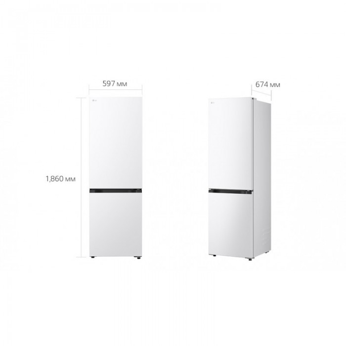 Холодильник, LG, з, нижн, мороз, 186x60х68, холодвідд220л, морозвідд113л, 2дв, E, NF, інв, диспл, внутр, зона, свті, білий