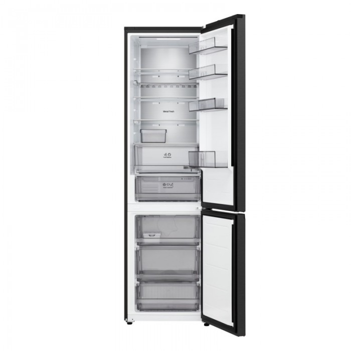 Холодильник, LG, з, нижн, мороз, 203x60х68, холодвідд262л, морозвідд113л, 2дв, E, NF, інв, диспл, внутр, Fresh, Сonverter, Metal, Fresh, чорний, матовий
