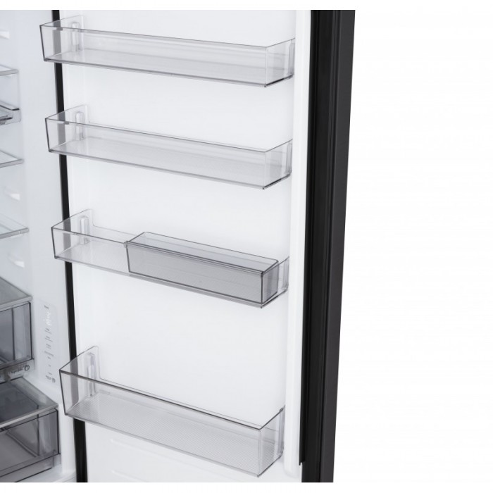 LED-освітлення, кришка Moist Balance Crisper для підтримання оптимальної вологості, Антибактеріальний ущільнювач Bio Shield, Режим економії електроенергії Eco Friendly, Кришка для підтримки оптимальної вологості, Перевішування дверей, нульовий зазор, лоток для заморожування льоду, винна полиця, складана полиця, пересувний кошик, міні кошик на дверцятах, металева задня стінка Metal Fresh