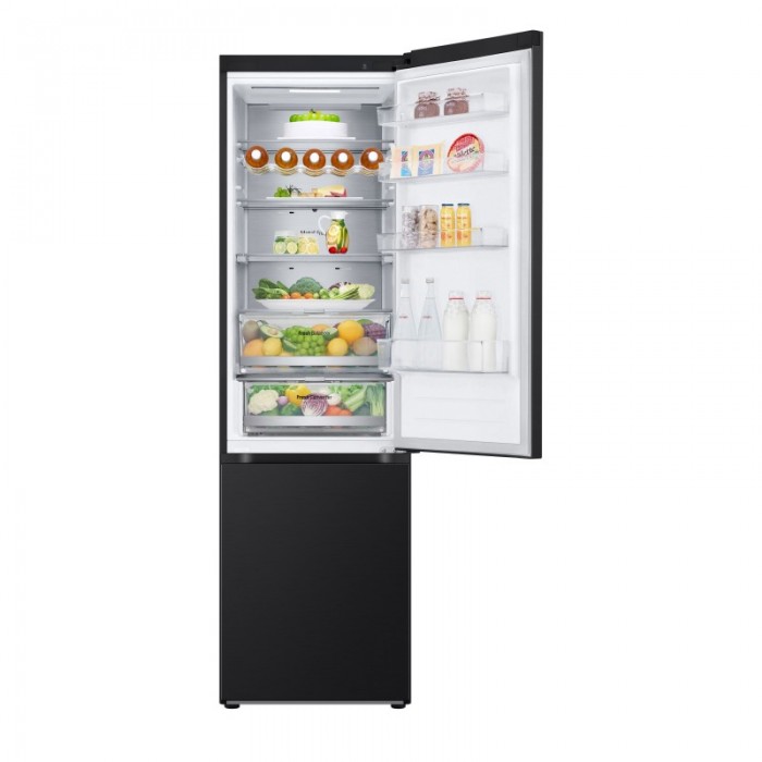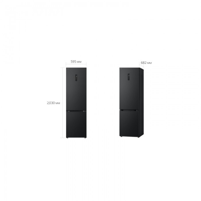 Холодильник, LG, з, нижн, мороз, 203x60х68, холодвідд277л, морозвідд107л, 2дв, А, NF, інв, диспл, зовн, Fresh, Сonverter, Metal, Fresh, чорний, матовий