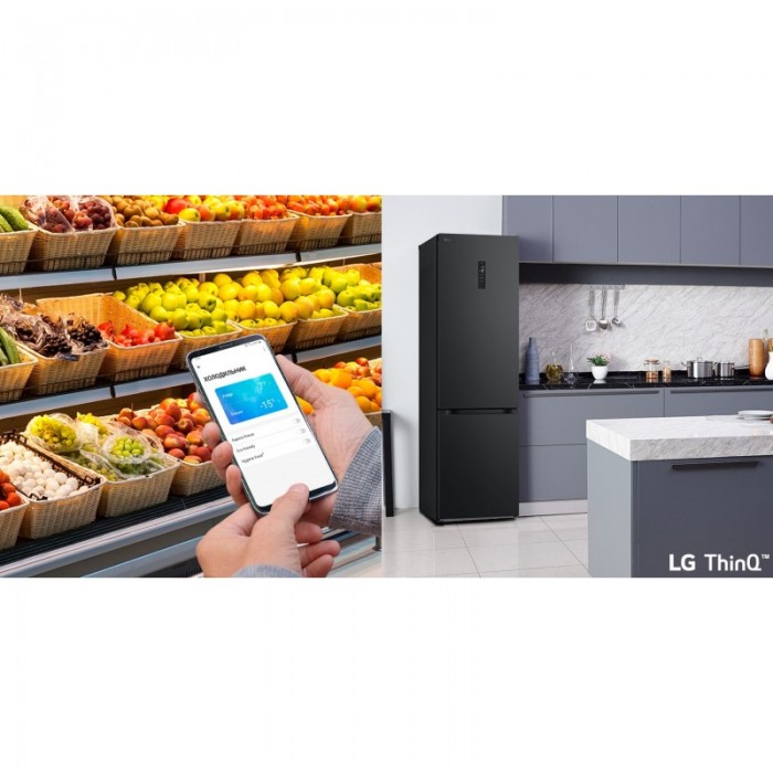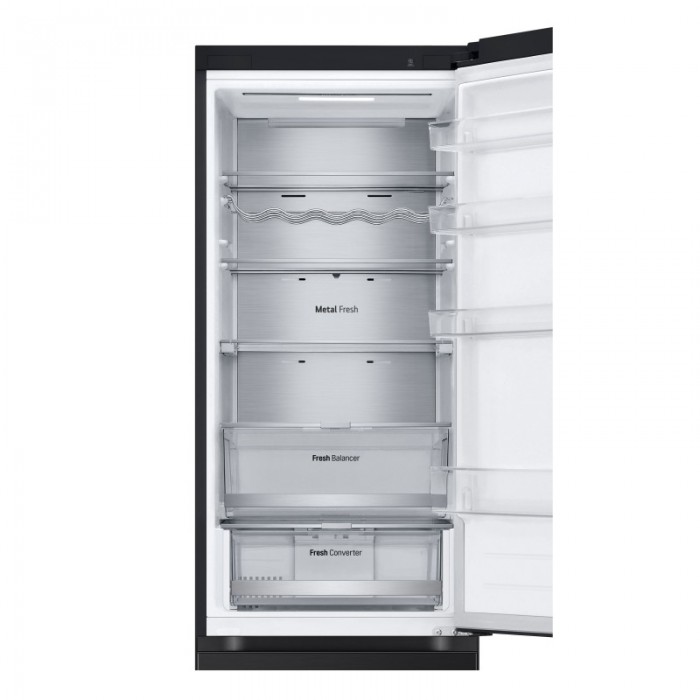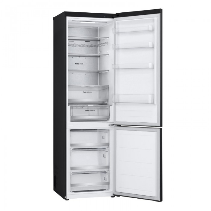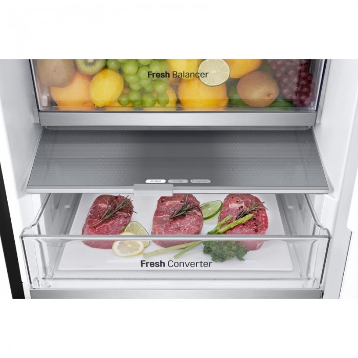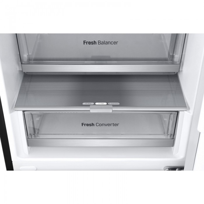 Холодильник LG з нижн. мороз., 203x60х68, холод.відд.-277л, мороз.відд.-107л, 2дв., А++, NF, інв., диспл зовн., Fresh Сonverter, Metal Fresh, чорний матовий
