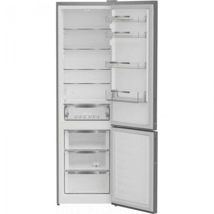 Холодильник Indesit INKS1401S4E1 — двокамерний пристрій сріблястого кольору з нижньою морозильною камерою, загальним об’ємом 386 л (266 л холодильна, 120 л морозильна). Клас енергоспоживання А++ з річним використанням 247 кВт·год, статична система охолодження та механічне управління. Розмір 202.5 × 59.5 × 67 см, рівень шуму 38 дБ, автономне збереження холоду до 33 годин. Двері перевішуються, полиці з загартованого скла, бокс свіжості та захист від стрибків напруги. Кліматичний клас SN-ST для стабільної роботи в помірному кліматі.