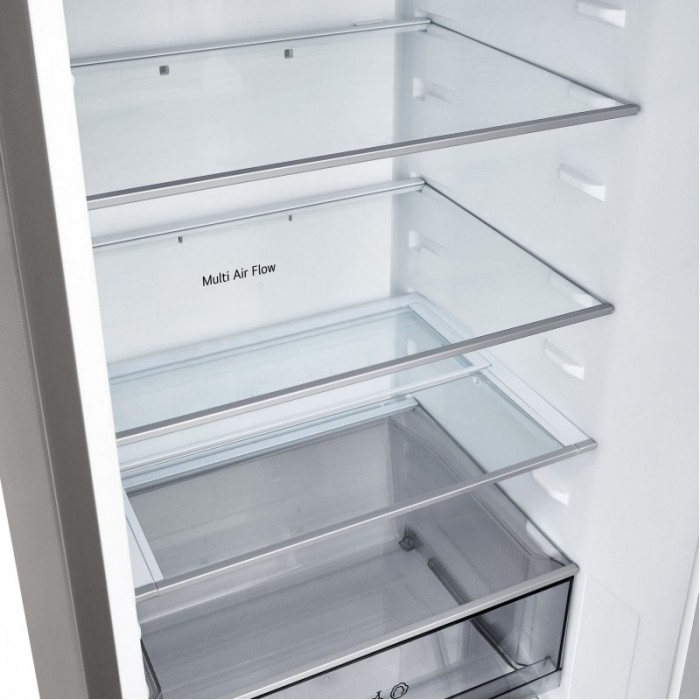 Холодильник LG GC-B509EMLM з нижньою морозильною камерою має загальний корисний об'єм 375 л (262 л холодильне відділення + 113 л морозильне). Пристрій оснащений інверторним компресором, системою Total No Frost, технологі... Read more...