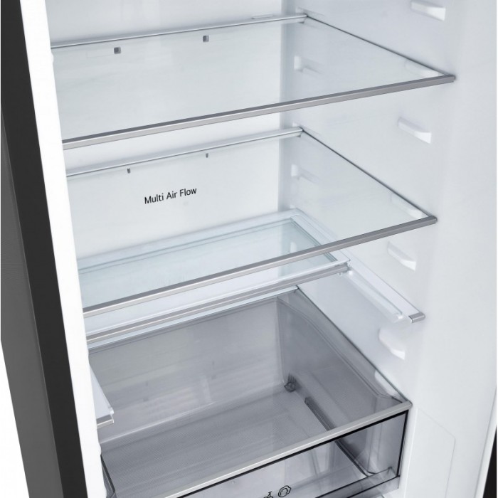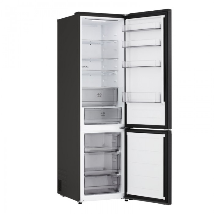 Холодильник LG з нижн. мороз., 203x60х68, холод.відд.-262л, мороз.відд.-113л, 2дв., E, NF, інв., диспл зовн., зона св-ті, чорний