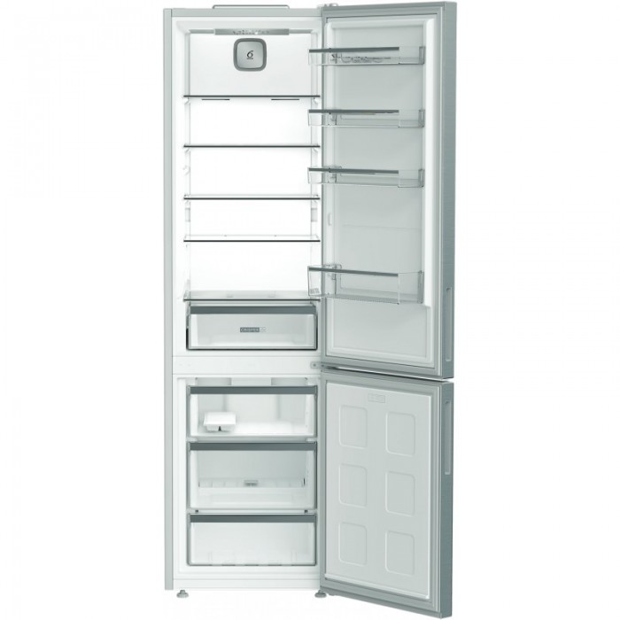 Холодильник Whirlpool WHK25404XP5E — двокамерна модель з нижнім розташуванням морозильної камери та системою No Frost. Загальний корисний об’єм 355 л дозволяє зручно зберігати продукти для великої родини. Інверторний компресор забезпечує стабільну роботу, низький рівень шуму та економне енергоспоживання класу A++. Нульова зона підтримує оптимальні умови для свіжих продуктів. Корпус з нержавіючої сталі надає сучасного вигляду кухні.