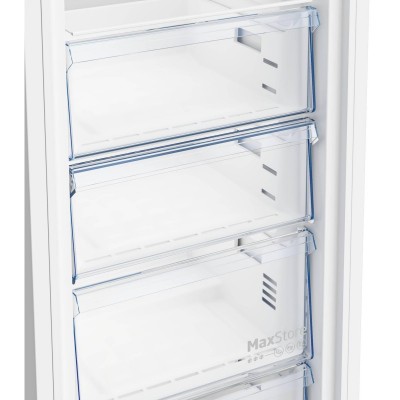 Морозильна камера Beko B1RFNE293W — зручне рішення для зберігання великої кількості продуктів. Завдяки технології NoFrost більше немає потреби розморожувати вручну. Модель має корисний об'єм 260 л, оснащена 5 ящиками для організації простору, сигналом відкритих дверцят та функцією перенавішування дверцят. Відмінно працює навіть при -15°C завдяки технології FreezerGuard.