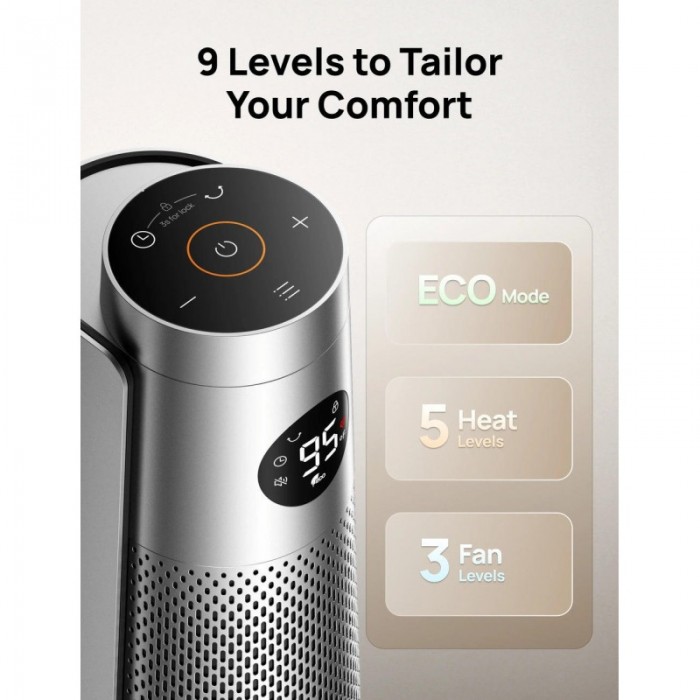 Тепловентилятор Dreo DR-HSH008 — це стильний і ефективний обігрівач із керамічним нагрівальним елементом та потужністю до 2000 Вт. Він забезпечує швидке нагрівання приміщень площею до 25 м², має 8 швидкостей роботи та електронне керування з LED-дисплеєм. Завдяки пульту ДУ, таймеру до 12 годин і захисту від перегріву та перекидання користування стає максимально зручним і безпечним. Сучасний сріблястий дизайн гармонійно поєднує функціональність і комфорт.