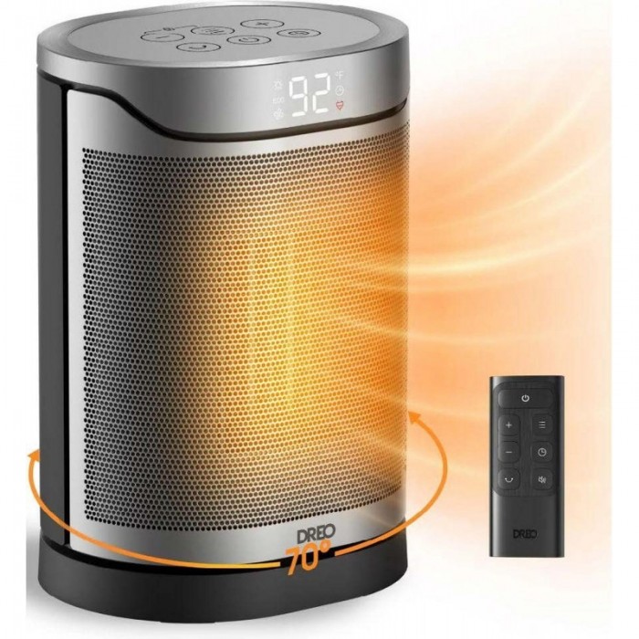 Тепловентилятор Dreo DR-HSH018 — це компактний та сучасний обігрівач із керамічним нагрівальним елементом потужністю 1500 Вт. Він ефективно обігріває приміщення до 20 м², забезпечуючи стабільний і швидкий нагрів за дві секунди. Електронне керування, LED-дисплей і пульт ДУ роблять використання зручним, а три швидкісні режими дають змогу обрати комфортну інтенсивність роботи. Модель має стильний сріблястий корпус, низький рівень шуму та повний набір систем безпеки.
