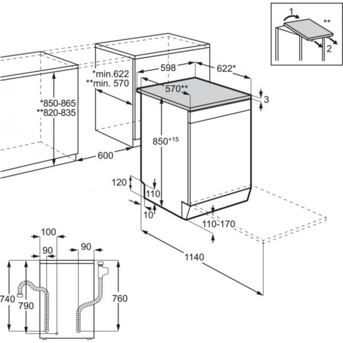 знімна стільниця, система Thermo Efficient, система зупинки води, сенсор визначення рівня забруднення води, Функція посиленої гігієни, автоматичне вимкнення