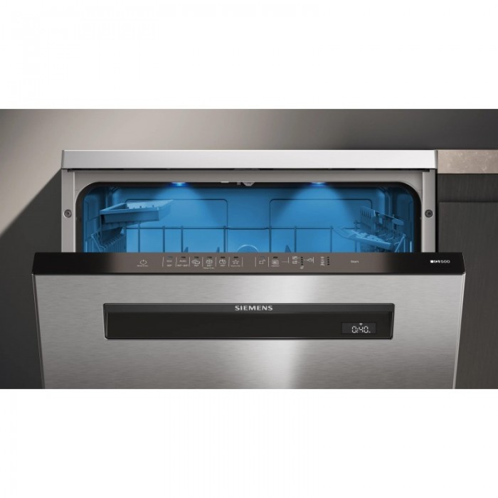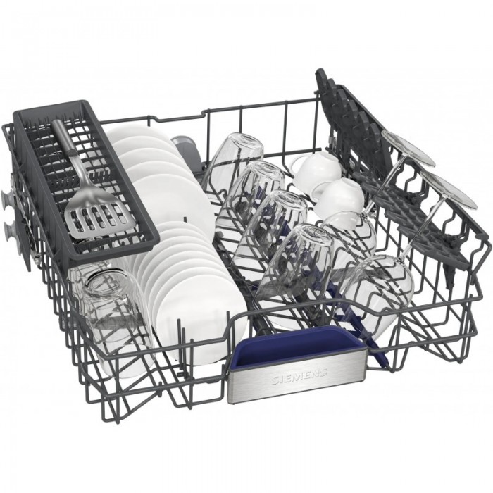 Посудомийна машина Siemens SN15EI00KT окремо встановлювана шириною 60 см з корпусом з нержавіючої сталі вміщує 13 комплектів посуду. Рівень шуму становить 42 дБ, клас енергоефективності B, а економний цикл споживає 64 кВт·год на 100 циклів і 9 літрів води. Верхній короб регулюється по висоті на трьох рівнях за системою rackMatic, що забезпечує гнучке розміщення посуду різної висоти.
