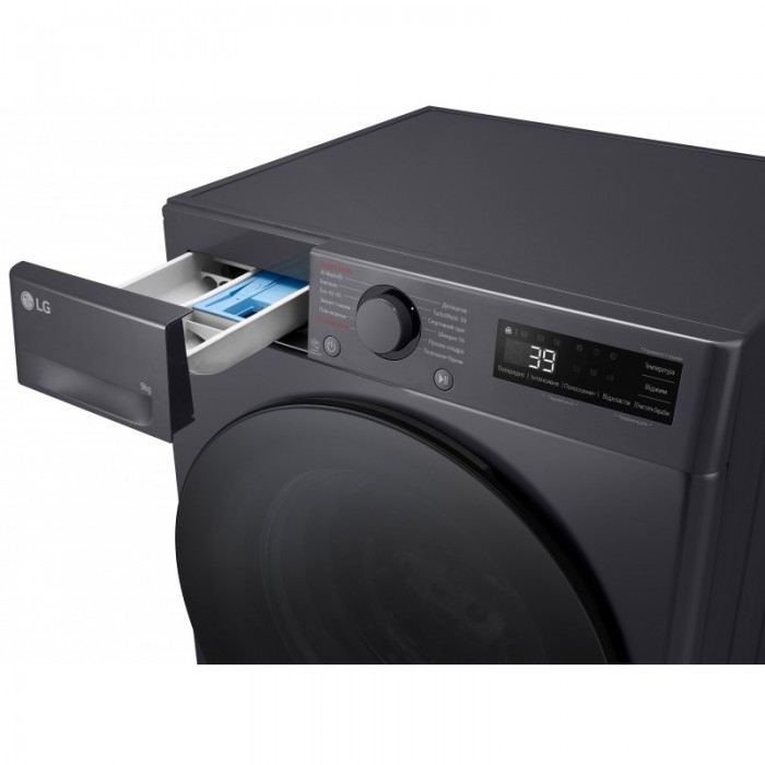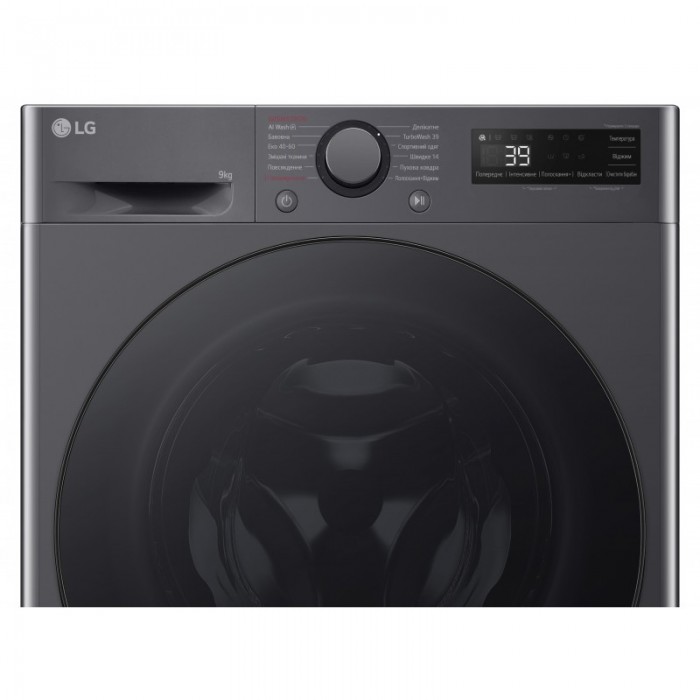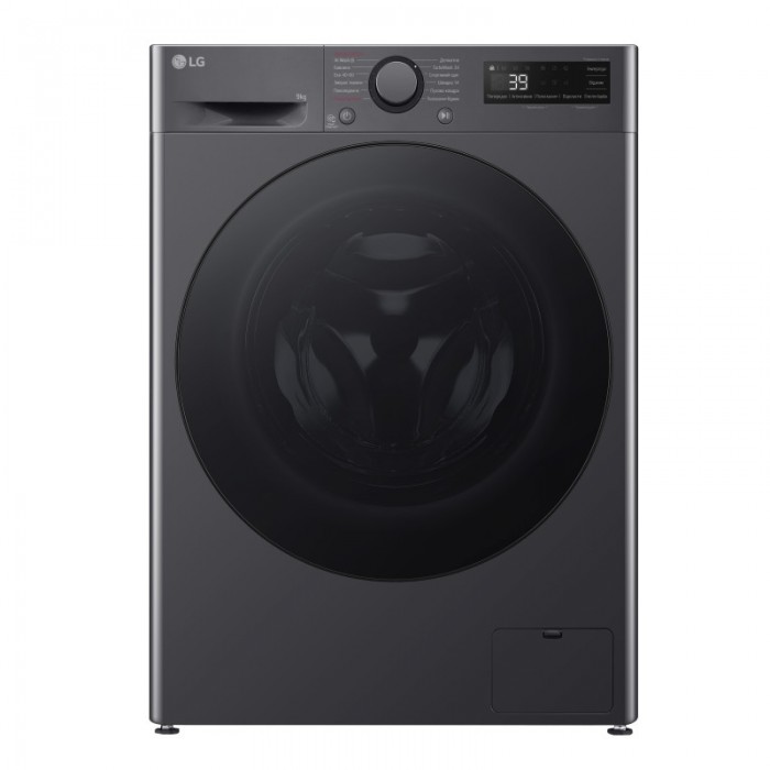 Пральна машина LG фронтальна, 9кг, 1200, A, 48см, дисплей, пара, інвертор, чорний