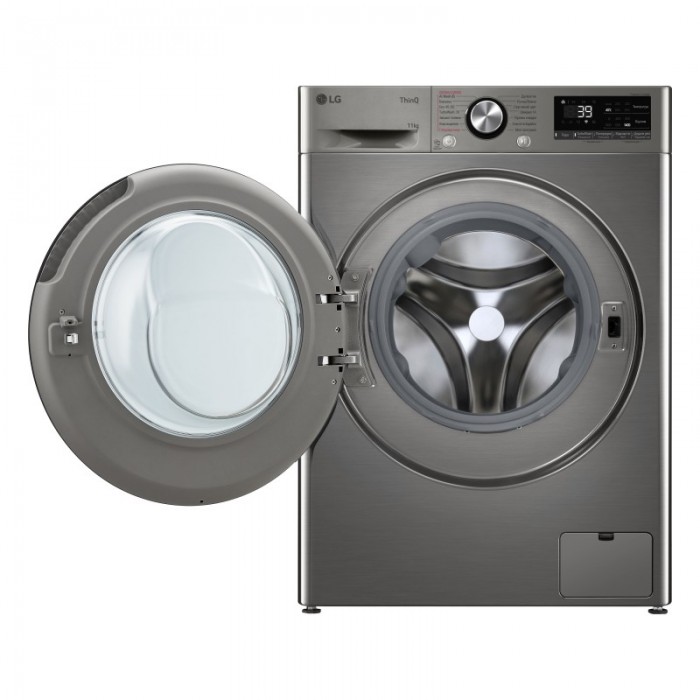 Пральна машина LG фронтальна, 11кг, 1400, A, 57см, дисплей, пара, інвертор, сріблястий