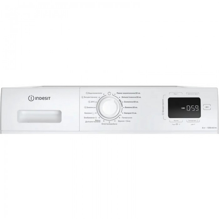 Пральна машина Indesit фронтальна, 8кг, 1200, A+++, 54.6см, дисплей, пара, інвертор, люк чорний, білий