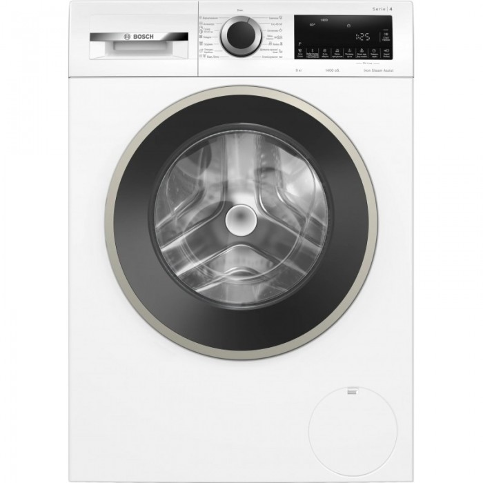 Пральна машина Bosch з фронтальним завантаженням призначена для ефективного прання з урахуванням типу тканин і характеру забруднень. Функція Iron Steam Assist зменшує кількість складок на одязі за допомогою пари. Система AntiStain автоматично адаптує параметри для видалення поширених плям. Двигун EcoSilence Drive забезпечує тиху та стабільну роботу. Програма AllergyPlus орієнтована на підвищені гігієнічні вимоги.