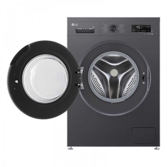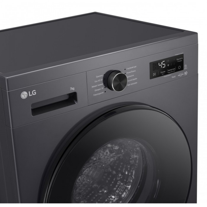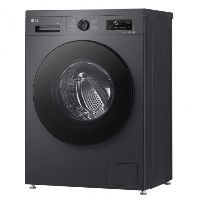Пральна машина LG фронтальна, 7кг, 1200, A, 44см, дисплей, пара, інвертор, чорний