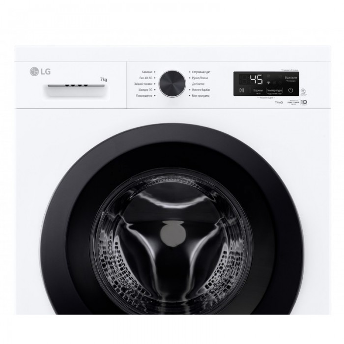 Технологія ''6 рухів турботи'' 6 Motion, індикатор залишкового часу, Система зменшення рівня вібрації, Система контролю піноутворення, Технологія контролю напруги (174-400 В), Блокування панелі керування від дітей, індикація режиму "Блокування від дітей, індикація обраних параметрів програми прання, індикація незачинених дверцят, індикація помилок у роботі, затримка завершення циклу прання (3-19 годин), автоматичний перезапуск зі збереженням попередніх налаштувань, Функція обробки парою Steam, відкриття дверей: праворуч, індикація режиму "Відкласти завершення", індикація режму "Віддалений старт", Завантаження додаткових програм через додаток LG ThinQ™ по Wi-Fi, індикація етапу циклу прання, Віддалене керування через додаток LG ThinQ по Wi-Fi