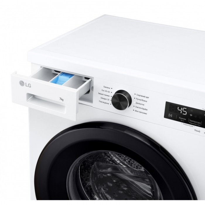 Пральна машина LG фронтальна, 7кг, 1200, A, 44см, дисплей, пара, інвертор, білий