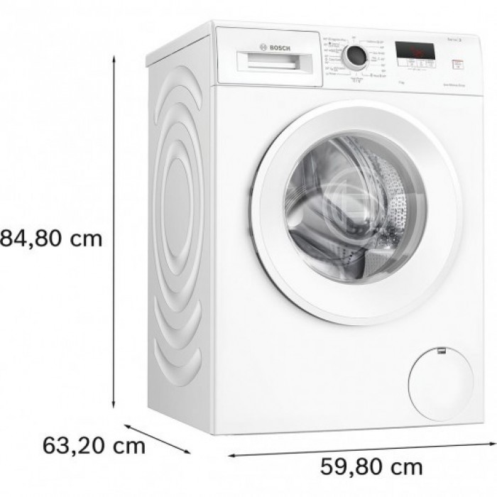 Фронтальна пральна машина Bosch розрахована на завантаження до 7 кг білизни. Швидкість віджиму сягає 1200 об/хв, що сприяє ефективному видаленню вологи. Дисплей відображає хід програми, залишковий час та параметри циклу. Серед програм — бавовна, синтетика, вовна та делікатне прання. Двигун EcoSilence Drive забезпечує стабільну та тиху роботу.