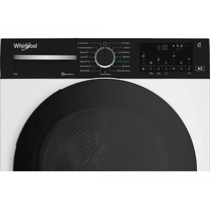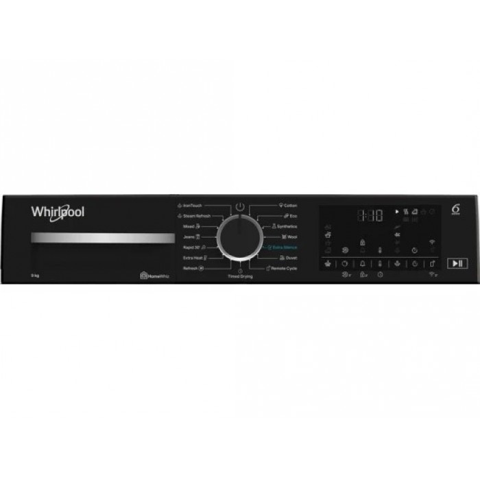 Сушильна, машина, Whirlpool, тепловий, насос, 9кг, A, 60см, дисплей, люк, чорний, білий