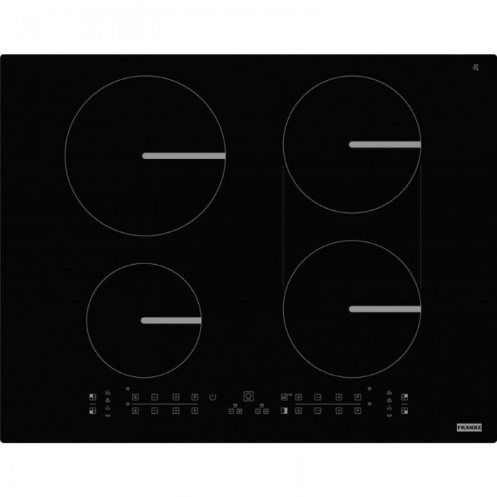Franke FSM 654 I B BK — індукційна варильна поверхня шириною 60 см з 4 зонами нагріву, сенсорним слайдер-керуванням та функцією Bridge для об’єднання зон. Підтримує 9 рівнів потужності + бустер на кожній зоні (макс. 3000 Вт), обмеження загальної потужності (2,5–7,2 кВт), функції підтримання тепла, тушкування, плавлення, кипіння. Внутрішнє скло чорне, без рамки, номінальна потужність 7,2 кВт. Є блокування панелі управління та таймер. Підходить для вбудовування в стільницю стандартним або врівень монтажем.