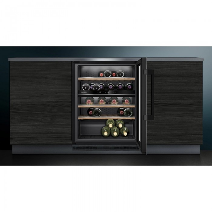 Холодильник для вина Siemens призначений для зберігання вин у двох незалежних температурних зонах. Модель оснащена дубовими полицями з металевими елементами, скляними дверцятами з UV-захистом і світлодіодним освітленням з режимом презентації. Передбачене зберігання до 44 пляшок. Кожну температурну зону можна налаштувати в діапазоні від 5 °C до 20 °C.
