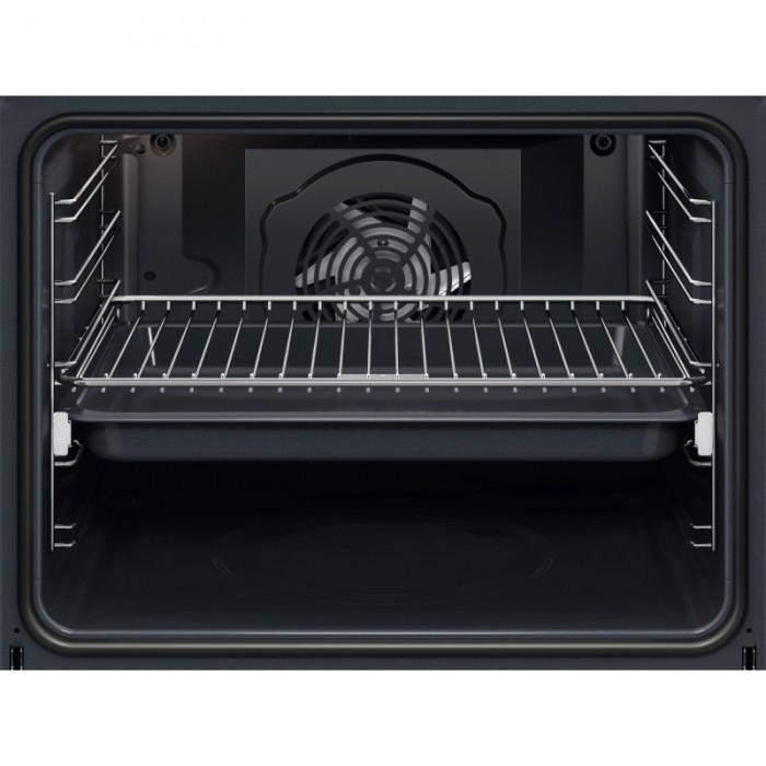 Electrolux KODEH10H — багатофункціональна вбудована духова шафа на 72 л з класом енергоефективності A+, функцією прямої пари (SteamBake), конвекцією та телескопічними напрямними на 1 рівні. Чорне глянцеве скло, сенсорний дисплей, 9 режимів приготування, включаючи спеціальний для піци та турбо-гриль. Легке очищення Aqua Clean, вентилятор охолодження, підсвітка камери та точний електронний таймер.