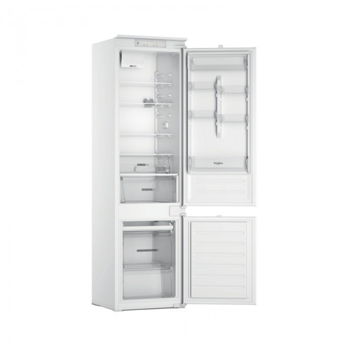 Вбудований холодильник Whirlpool WHC20D023B1SF працює тихо — до 34 дБ(А). Технологія 6th SENSE автоматично регулює температуру й вологість для довшої свіжості продуктів. Усередині — міцні скляні полиці з регулюванням по висоті та ящик для фруктів і овочів з оптимальною вологістю. Нижня морозильна камера має кілька висувних шухляд для зручної організації. LessFrost зменшує утворення інею, а Stop Frost допомагає уникати наростів льоду та спрощує догляд.