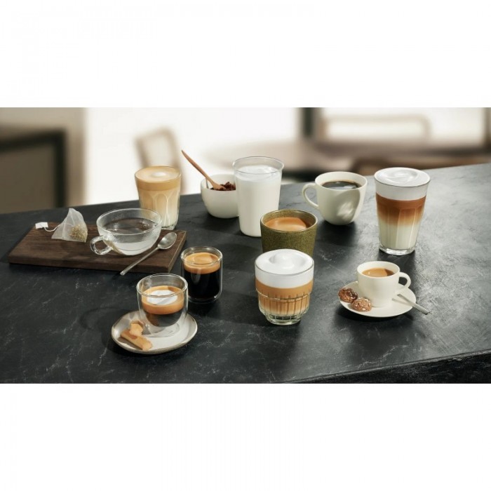 автоматичний капучинатор, регульований по висоті дозатор кави, деталі можна мити в посудомийній машині:, знімний заварювальний блок, керамічний кавовий млинок, кнопки з підсвічуванням, інтегрована молочна система зі шлангом, подвійний помел і заварювання вдвічі міцнішої кави, регульований ступінь помелу (багаторівневий)