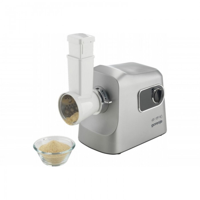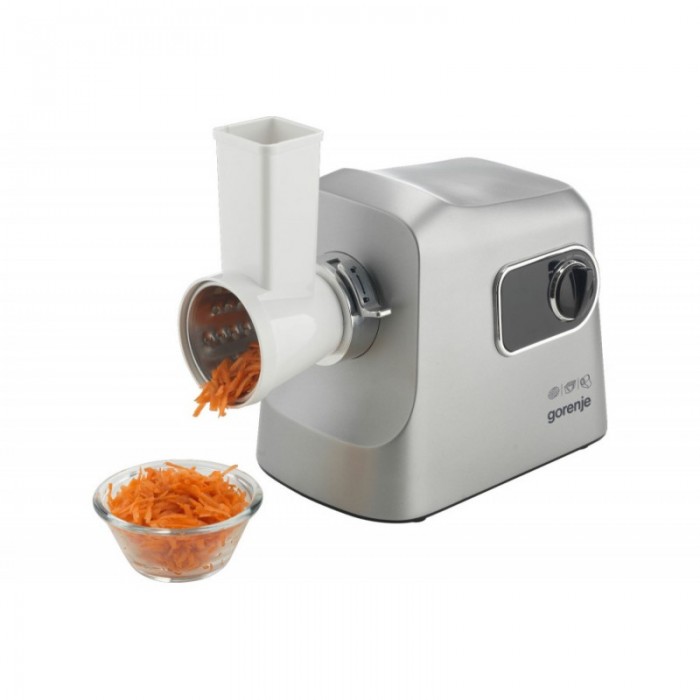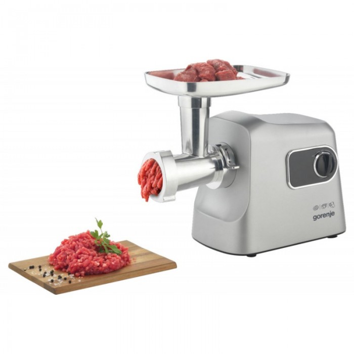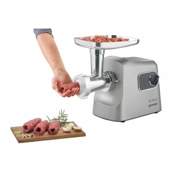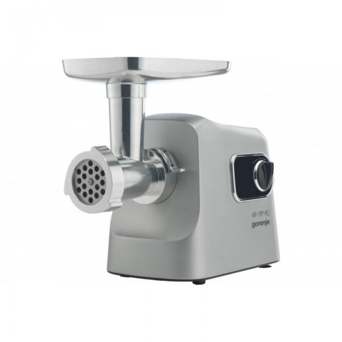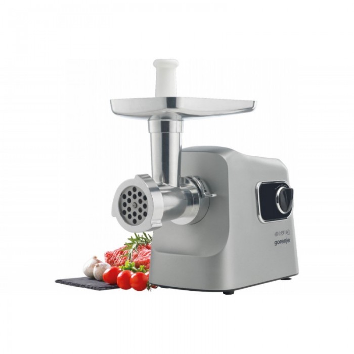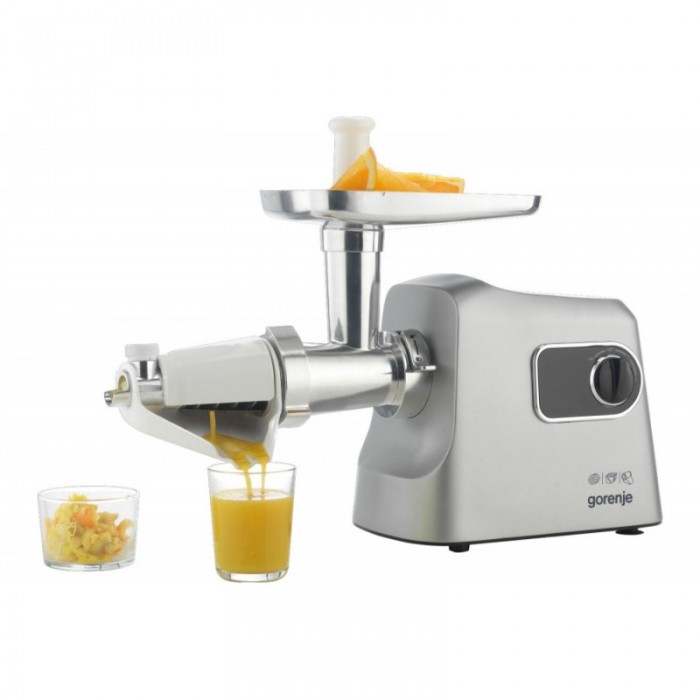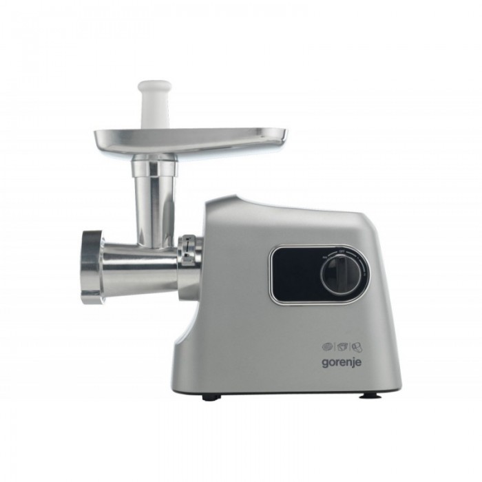 М'ясорубка Gorenje, 2500Вт, 2.8кг/хв, 3 решітки, насадка для ковбас, кеббе, шнековий соковидавлювач, 3 терки, пластик/метал, нерж
