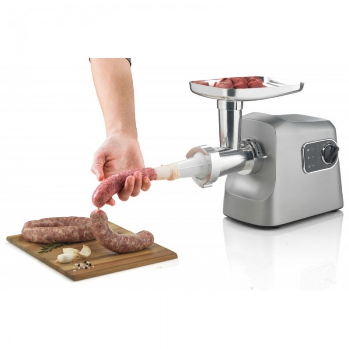 М’ясорубка Gorenje MG2500DS поєднує потужність 2500 Вт і високу продуктивність 2,8 кг/хв. Вона комплектується трьома решітками, насадками для ковбас, кеббе та шнековим соковидавлювачем. Має реверс, захист від перегріву й миттєву зупинку двигуна. Корпус із пластику та металу забезпечує надійність і легке очищення.