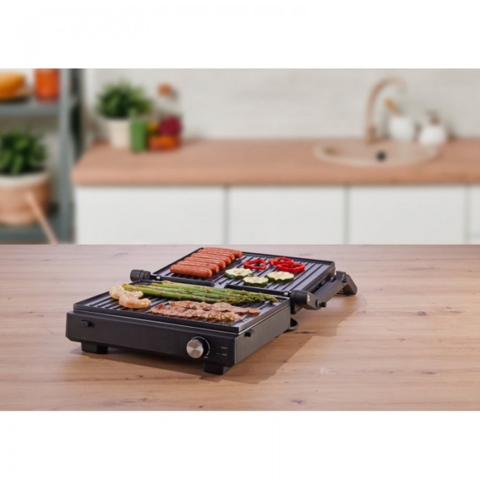 Контактний гриль Gorenje призначений для приготування паніні, тостів, м’яса, риби та овочів на нагрітих пластинах. Антипригарне покриття робочих поверхонь зменшує прилипання їжі та спрощує догляд після приготування. Конструкція підтримує роботу у закритому та відкритому положеннях, що дає змогу змінювати площу приготування. Передбачено регулювання температури, лоток для збору жиру та вертикальне зберігання.